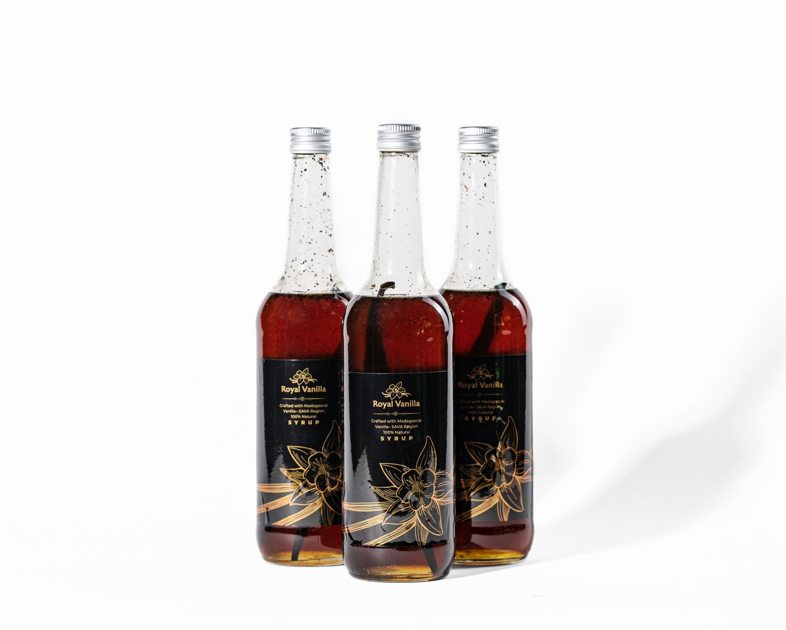 Royal Vanilla syrup is a premium product. Our syrup is made from hand-selected bourbon vanilla pods (Vanilla planifolia). The syrup, based on raw cane sugar and filtered water, has an authentic, deep vanilla flavor and aroma. It is perfect for tea and coffee, chai tea, cocktails, desserts, ice cream, and pancakes. The product should be stored in the refrigerator.
